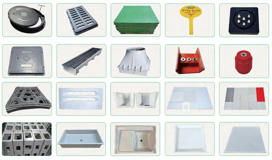 公司生產的復合材料主要有:聚酯SMC片材,環(huán)氧SMC片材,光感SMC片材;BMC團料,環(huán)氧BMC團料,酚醛BMC團料。